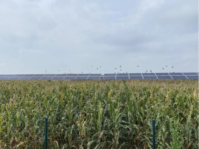 ▲ 光伏电站里,数千亩玉米等待收割