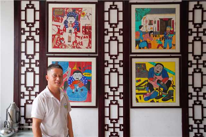 “画家们受益,村民们也有奔头。画村建立起来后,多次承办全国农民画展,亮相媒体被人熟知。每年游客都有几十万,带动了我们村农副产品的销售,两个自然村开农家乐的农户超过20多户,村民的收入也大大提高。”郭辉补充道,“现在我们万安的农民画还被学校纳入了课程,打造研学基地,很多机构也会带着学生来这里写生、培训,传承地方特色文化,这也进一步推广了我们万安的乡村文化品牌,打造文化产业。”