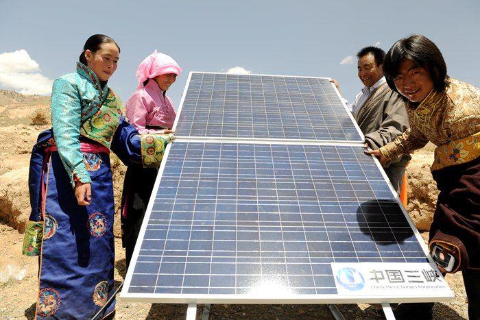 果米村的藏族牧民三措吉说,过去一家人煮奶茶、做饭需要燃烧牦牛粪加热。遇到下雨天,潮湿的牛粪光冒烟不燃烧,整个毡房呛的要命,连一口温水也烧不开。三峡新能源公司给我们安装的户用系统,改变了我们“天亮看太阳,天黑看月亮”的窘境,真正为我们牧民打开了一扇开拓视野的大门。看着房前摆放的印有“中国三峡”标志的太阳能电池板,三措吉嘴角露出笑意。这舒心一笑,既是三措吉对美好生活的期盼,也是对辛苦劳作的全体建设者最大的慰藉。