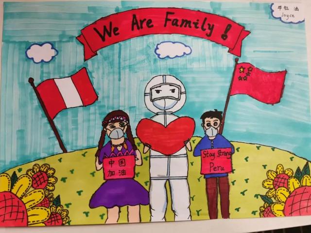 在为秘鲁人民送去医疗物资的同时,三峡集团员工的子女自发组织起来,用手中的画笔,将饱含祝福的寄语绘成图画,贴在援助物资的外箱上,以此表达对秘鲁人民“同舟共济、共度时艰”的深厚情谊。