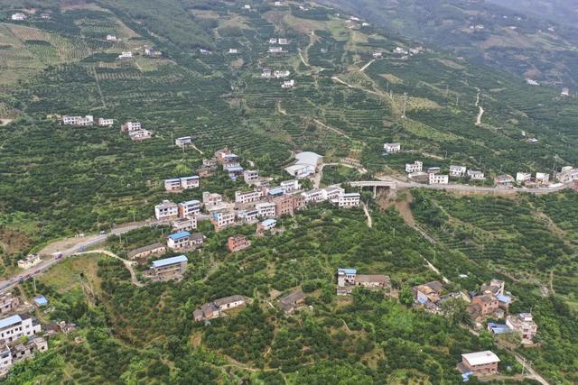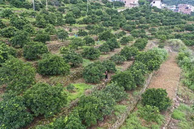 6月19日,在重庆市奉节县安坪镇三沱村,村民房前屋后都种上了柑橘树。(无人机照片)新华社记者黄伟摄