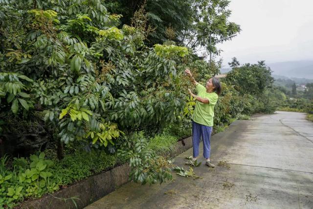 在三沱村上游的万州区武陵镇下中村,51岁的移民邓秀英也在忙碌着。她来到村里的桂圆种植基地,拿起剪刀,为挂满果实的桂圆树修剪枝叶。