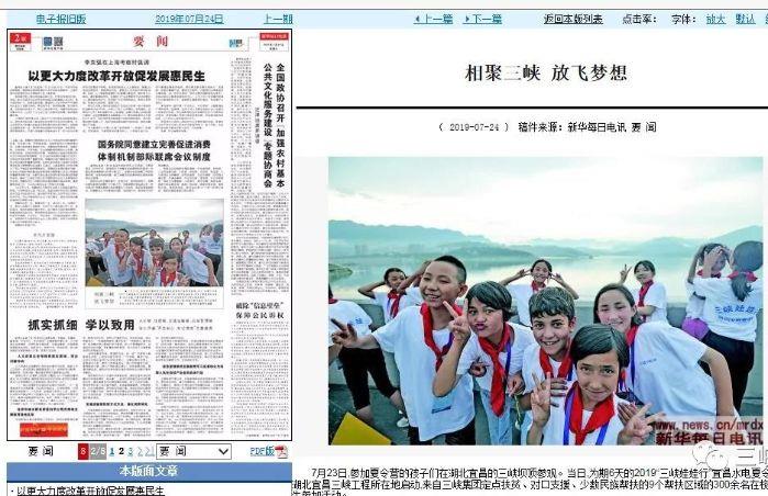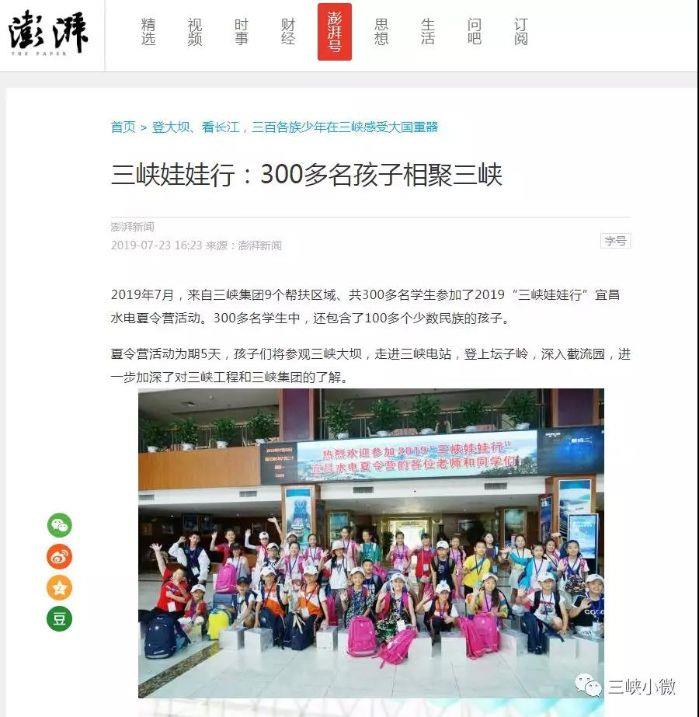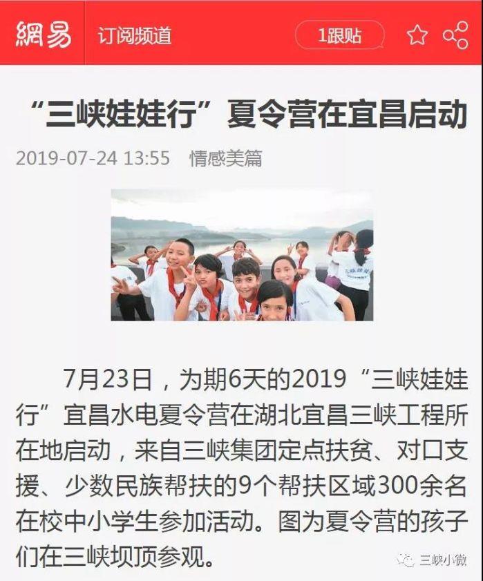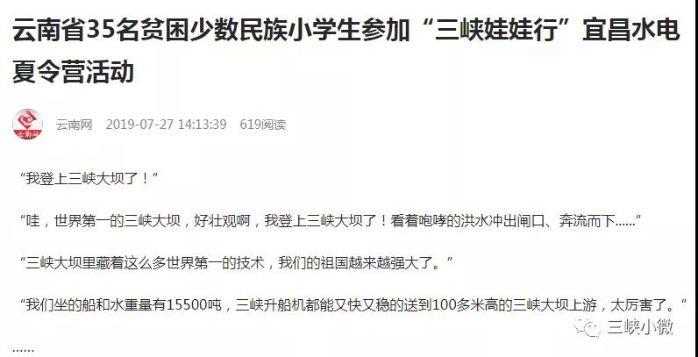 另外,各地方媒体也发布了2019年“三峡娃娃行——宜昌水电夏令营”活动的相关报道。