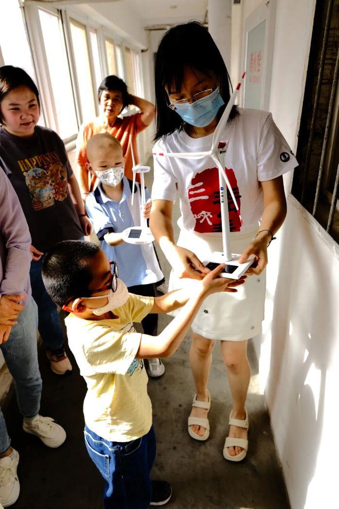 通过三峡志愿者带领孩子们拼装“太阳能风机模型”,让孩子们了解三峡集团、了解清洁能源,促进孩子们思考和动手实践,了解阳光的神奇力量,在风机转动的那一刻,孩子们自信心、喜悦感瞬间爆棚!志愿者还带领孩子们一起练习“让爱传出去”手势舞、“花园里种花”童谣等游戏,陪伴孩子们渡过了一个难忘的节日,让大病家庭体会到来自社会的关爱,树立战胜病魔的决心。
