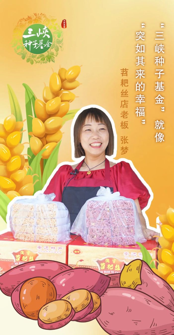 低息、便捷,“三峡种子基金”就像“突如其来的幸福”,帮助张梦开始了她的创业之路。从小吃到大的苕耙丝,就这样成为张梦迈向幸福生活的基石。