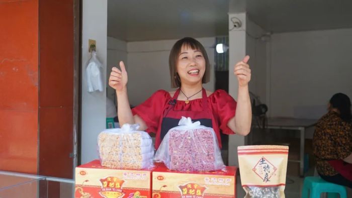 离家近、时间又灵活,镇上的阿姨都乐意到张梦店里帮工。“反正在家里也是闲着,赚点钱挺好的。”一位正在忙着包装苕耙丝的阿姨笑着说。不经意间,张梦因苕耙丝而起的幸福生活得以与镇上更多邻里分享。