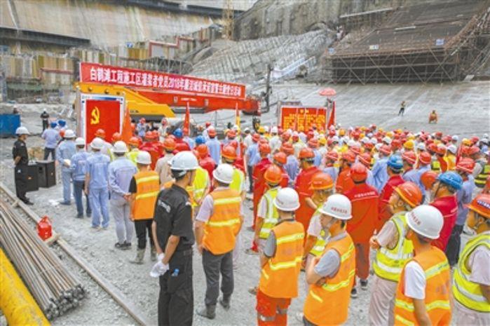 2018年七一前夕,白鹤滩水电站工程施工区大党建工作统筹协调委员会组织灌浆者党员,在大坝基坑举行廉洁诚信承诺宣誓主题党日活动,全体党员面对党旗重温入党誓词,宣读廉洁诚信承诺。加强纪检协作,保持反腐败斗争压倒性态势,也是施工区大党建工作的主要内容之一。