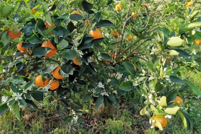 ▲ 奉节县安坪镇三沱村柑橘园“花果同树”美景