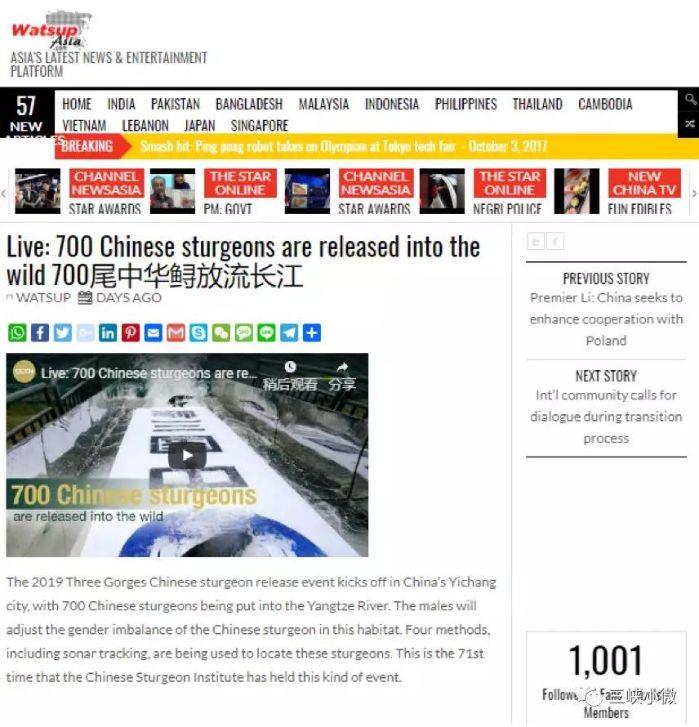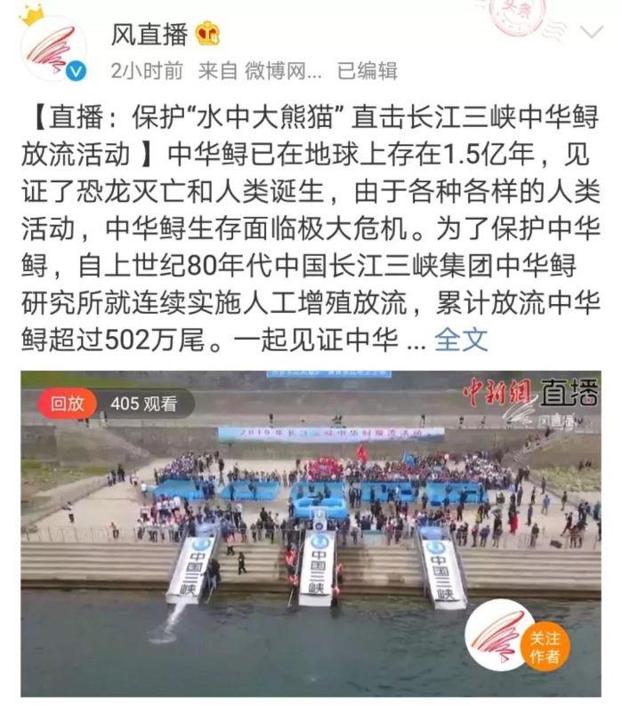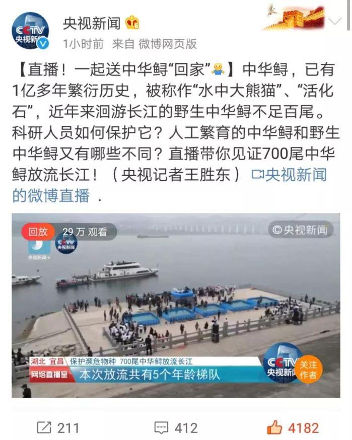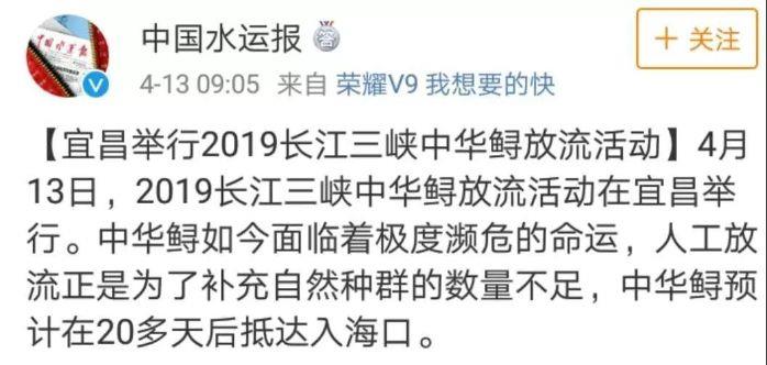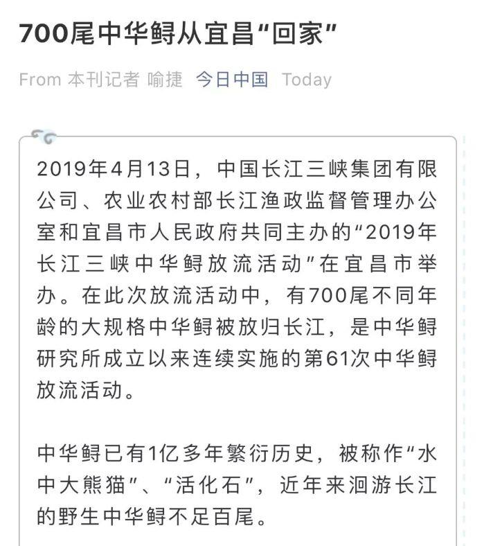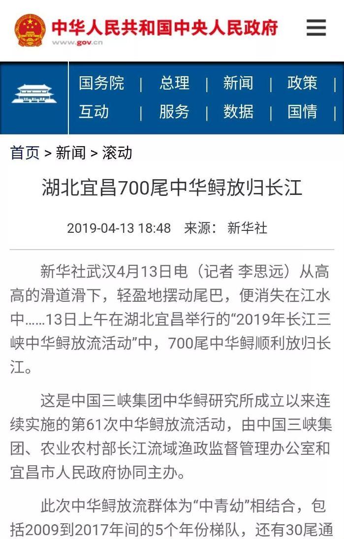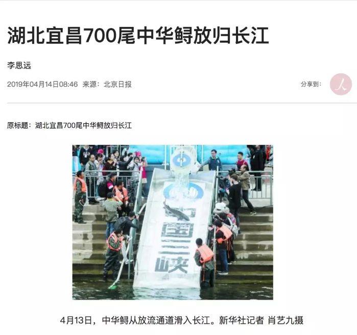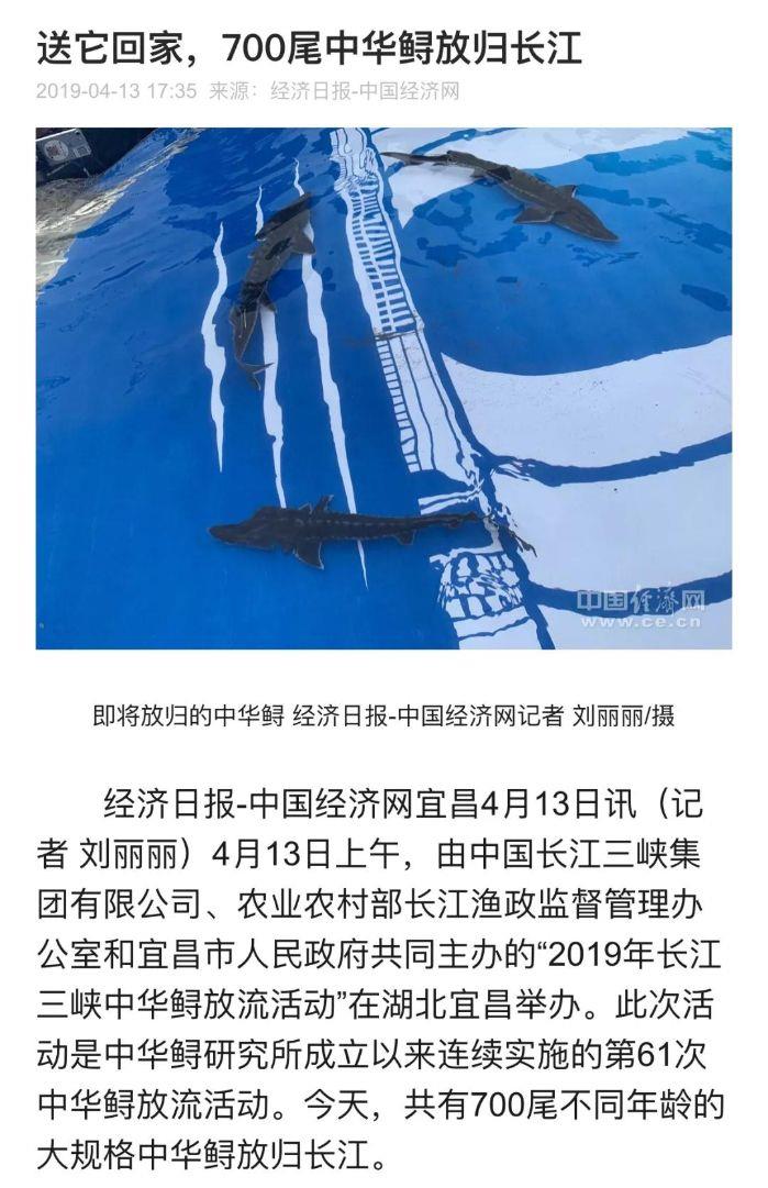 本网讯(李长辉 徐瑶)4月13日,以“共抓长江大保护、保育长江水生生物”为主题的2019年长江三峡中华鲟放流活动在宜昌圆满结束,700尾子二代中华鲟放归长江。消息出来后,国内外各大媒体一直给予关注,报道的热度和力度势头强劲。