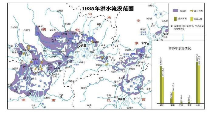 1931年、1935年,长江两次暴发大洪水,因灾死亡人数均超过14万人。1954年,长江再发特大洪水,武汉市被围困百日之久,京广铁路100余天无法正常通车。