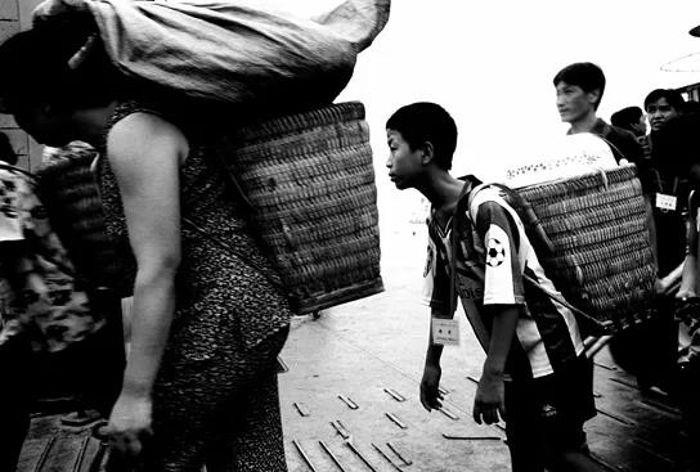 ▲2000年8月17日,经过4天的奔波,移民们到达上海崇明岛3号码头。摄影:晋永权