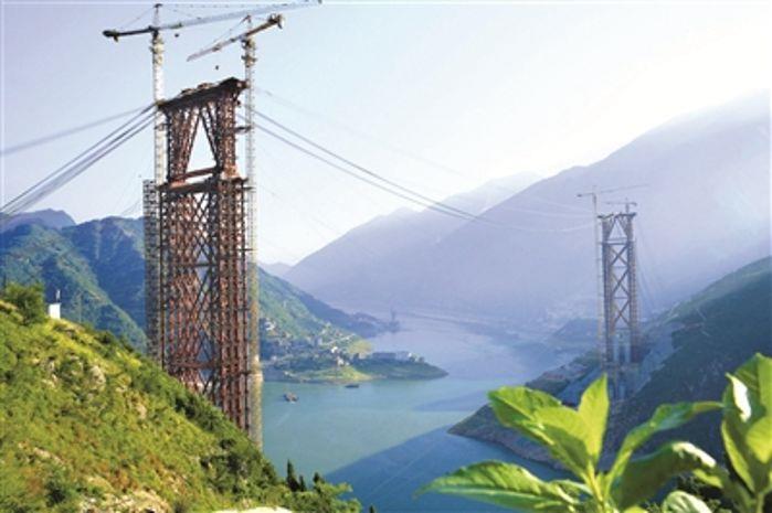 建设中的香溪长江公路大桥。 (摄影:王罡)