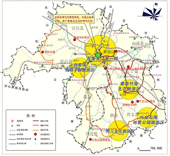 | 宜宾市旅游规划示意图--向家坝库区沿线旅游规划区位 |