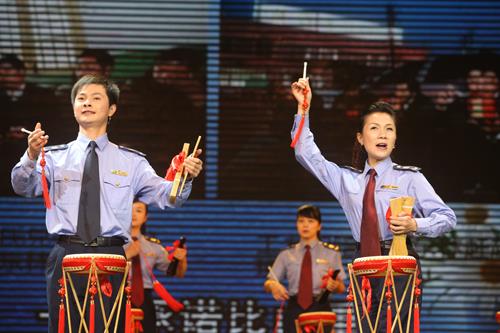 上图为由武汉市黄陂区青年曲艺骨干吴健、陈君等编导的湖北大鼓《信义兄弟》——孙水林、孙东林的感人事迹深受观众喜爱。
