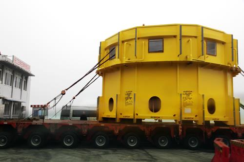 世界最大单机发电容量、向家坝电站3号发电机组下机架中心体装载上船顺利启运