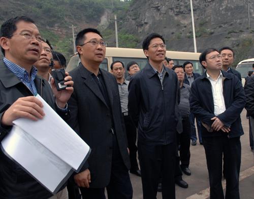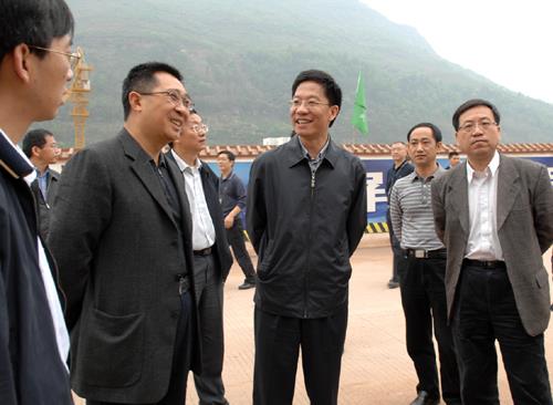 | 四川省委常委、副省长钟勉(左三)一行在中国三峡集团副总经理樊启祥(左二)的陪同下,考察了向家坝工地。 |