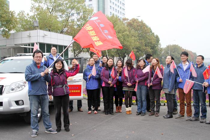 三峡传媒公司总经理助理郑斌为首批记者授旗,率队出发的中国三峡工程报社副总编辑王东红从郑斌手中接过红旗时表示:“感谢领导对报道组的信任,我们一定尽我所能,发挥每个人的聪明才智,搞好这组报道!”