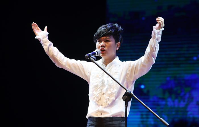 | 溪洛渡工程建设部何俊鹏演唱《我是一只小小鸟》。(张学琼 摄) |