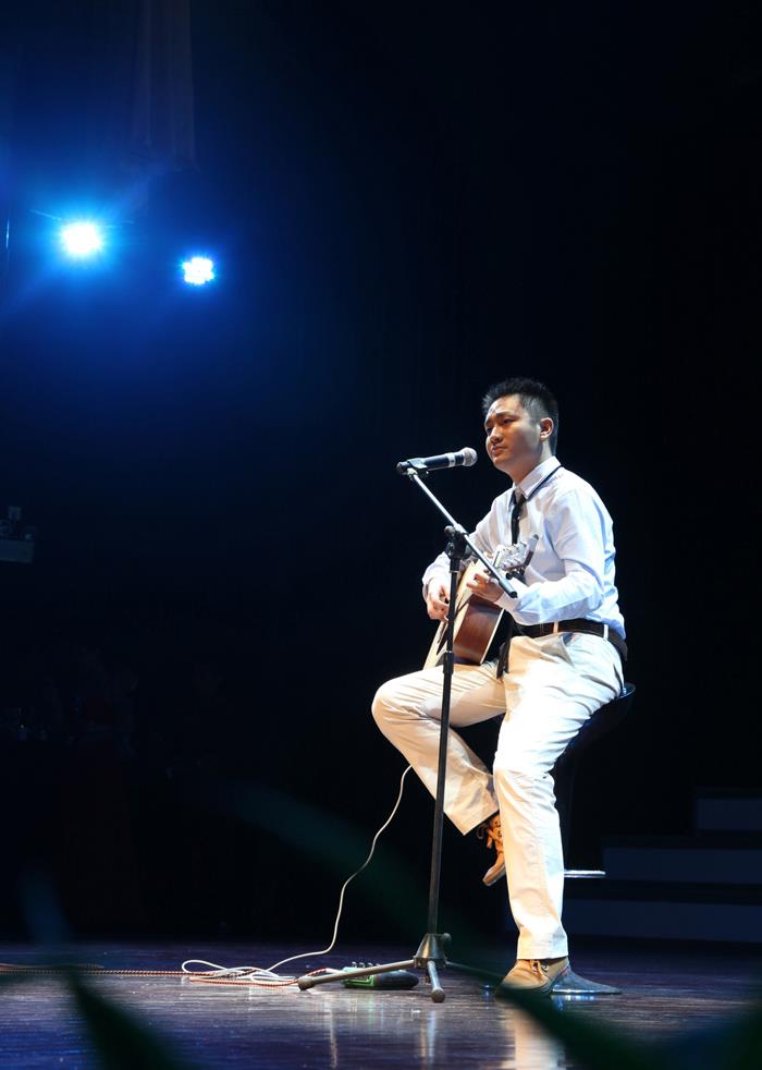 | 中国水利电力对外公司郭靖演唱《光荣绽放》。(孙荣刚 摄) |