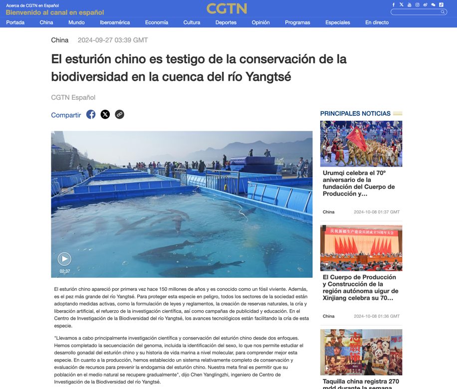 ▲ CGTN网站西语报道《探访中华鲟生活的地方 见证长江流域生物多样性保护》