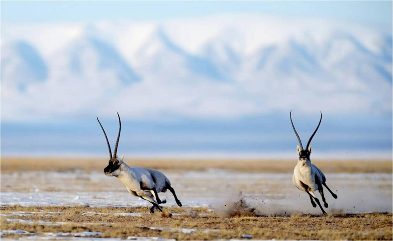 ▲ 可可西里保护区内极速奔跑的藏羚羊 图片来源:三江源国家公园可可西里管理处