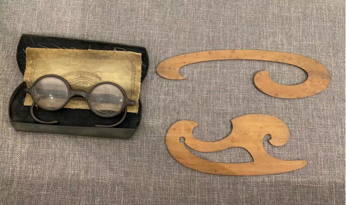 ▲1918年至1919年间,在上海寓所,孙中山“以平生之抱负和积年之研究所得”,先后写成《孙文学说》和《实业计划》。此为孙中山阅读写作时所使用的曲线板和眼镜。图片来源:上海孙中山故居纪念馆