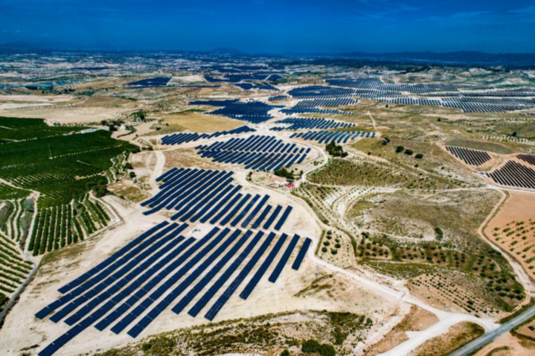 映界光伏电站位于西班牙东南部穆尔西亚自治区,总装机49.5万千瓦,年均发电量约为7.5亿千瓦时,可满足45万居民的电力供应。