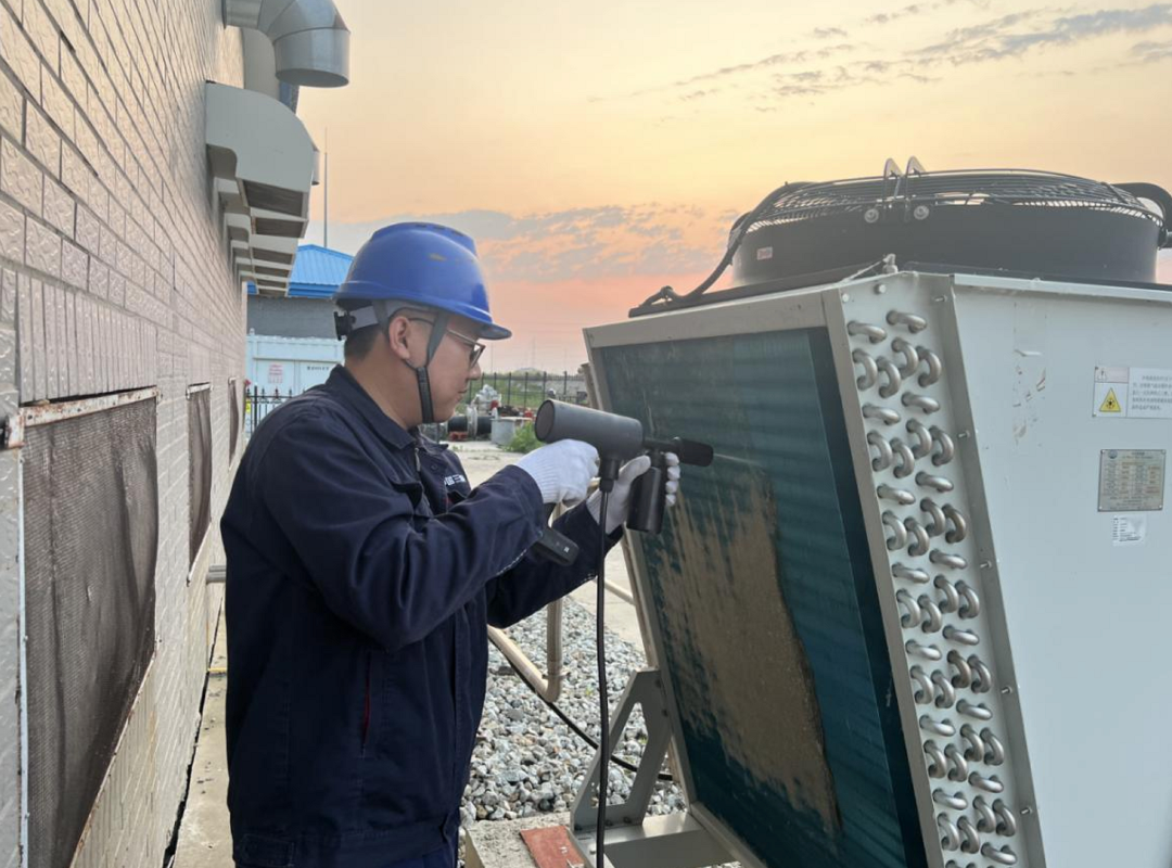 ▲ 三峡吉林大安海坨风电场运维人员正在清理散热器