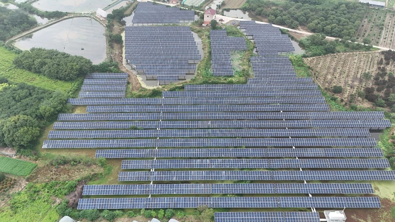 该项目光伏设施布置在12个行政村镇交错的复杂水域,场区320余个鱼塘星罗棋布,遇到梅雨季节,不仅施工难度大,水域生态保护要求也高。项目团队创新采用“分阶段动态施工法”,根据鱼塘水位变化,灵活调整支架组件安装水域,实现了雨季施工“零中断”,保障了项目准点发电。