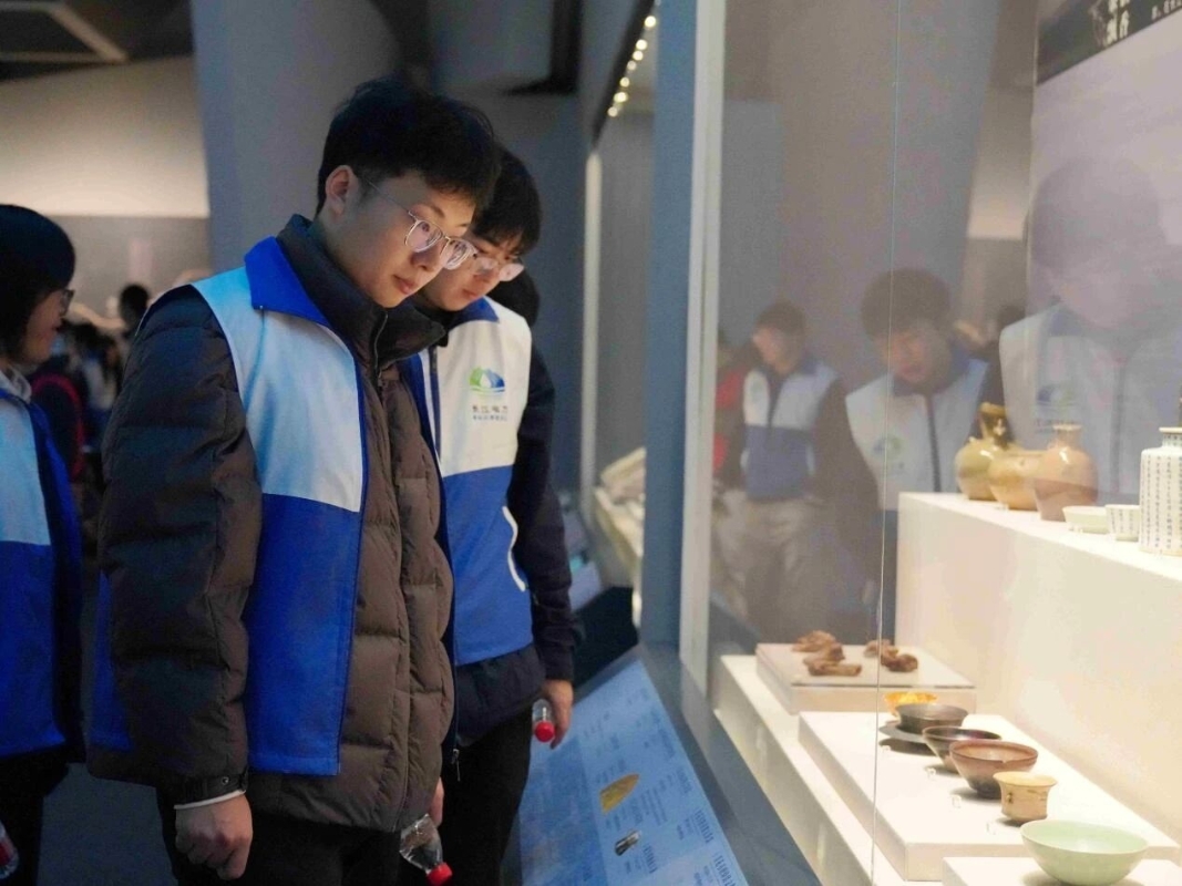 ▲青年们观看“大江东去:长江水文化展” 摄影:毛翔春