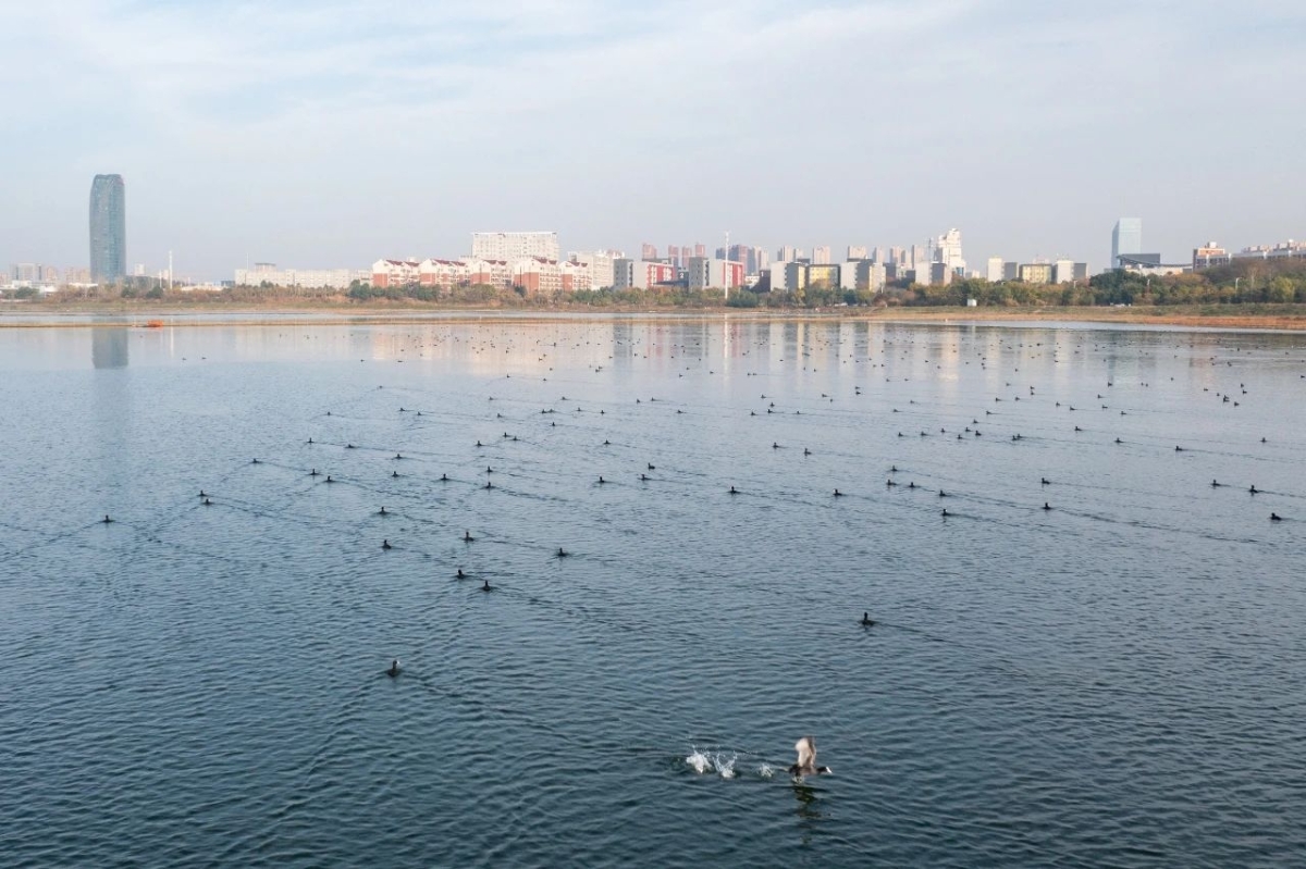 武汉地处东亚—澳大利西亚候鸟迁徙路线的中心位置,是候鸟迁徙重要的越冬地、中转场和加油站。武汉的鸟类数量,也在冬季达到顶峰。在武汉观鸟协会发布的《武汉鸟类图鉴》中记载,从19世纪60年代至2024年1月,武汉地区共记录野生鸟类462种,隶属于21目80科239属,分别占到中国鸟类目数的80.77%,科数的69.57%,属数的47.33%,种数的30.70%,鸟类资源丰富。在颜军看来,这得益于武汉城市与湿地的高度融合。