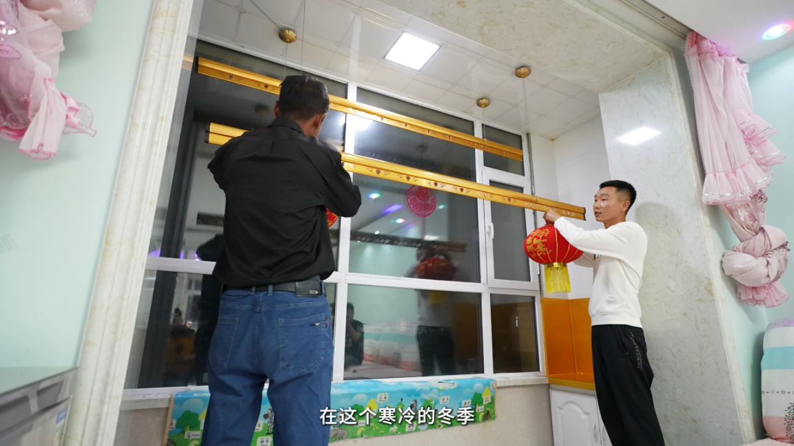 ▲ 大岗子镇的居民在温暖明亮的家中挂起大红灯笼,迎接新春的到来