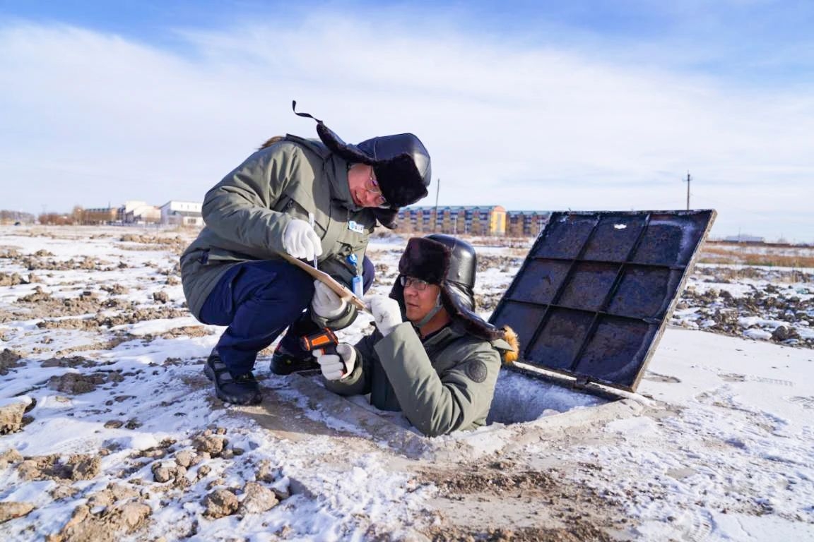 ▲ 户外气温低至零下20摄氏度,大安地热供暖项目的员工钻进地热井井口采集运行数据