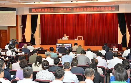 | 5月19日,国资委召开处级以上干部大会,国资委主任、党委书记张毅为大家讲“三严三实”专题党课,和大家一起深入学习领会习近平总书记关于“三严三实”的重要论述,贯彻落实中央关于开展“三严三实”专题教育的决策部署,对委直属机关开展专题教育进行动员。国资委副主任、党委委员黄丹华主持会议。国资委党委委员、监事会主席,总会计师、副秘书长出席会议。中央组织部干部四局有关同志到会指导。