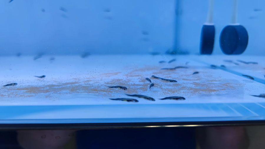 正在食用丰年虫的长江鲟仔鱼。中华鲟研究所供图