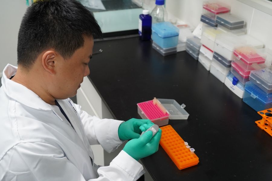 图为胡亚成正在开展项目相关实验